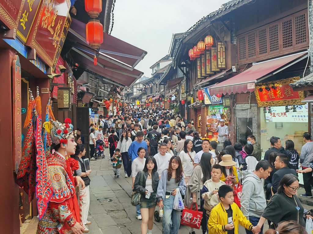 磁器口古镇占地面积39万平方米,其中核心区面积6.99万平方米,2021年景区扩容提质后,景区日最大承载量提高至31.14万人次、瞬时最大承载量为7.785万人次。据统计,“五一”节前两日,古镇接待游客已超24万人次。磁器口古镇管委会有关负责人介绍,节日期间,景区紧盯防拥挤踩踏、交通安全等重点领域,坚守“红线意识”和“底线思维”把安全放在首位,实现景区安全、有秩、舒适。